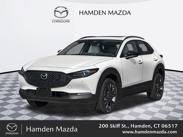 Hamden Chevrolet Mazda is proud to present you with another True Market Priced Vehicle. This 2026 Mazda CX-30 2.5 Turbo Aire Edition is loaded with the following Factory Options: 12 Speakers, 4-Wheel Disc Brakes, ABS brakes, Air Conditioning, Alloy wheels, AM/FM radio, AppLink/Apple CarPlay and Android Auto, Auto High-beam Headlights, Auto-dimming Rear-View mirror, Automatic temperature control, Black Lug Nuts & Black Wheel Locks, Brake assist, Bumpers: body-color, Compass, Delay-off headlights, Driver door bin, Driver vanity mirror, Dual front impact airbags, Dual front side impact airbags, Electronic Stability Control, Emergency communication system: MAZDA CONNECT, Exterior Parking Camera Rear, Front & Rear Splash Guards, Front anti-roll bar, Front Bucket Seats, Front Center Armrest, Front dual zone A/C, Front reading lights, Front wheel independent suspension, Fully automatic headlights, Garage door transmitter: HomeLink, Heads-Up Display, Heated door mirrors, Heated Front Bucket Seats, Heated front seats, Illuminated entry, Knee airbag, Leather Shift Knob, Leather steering wheel, Leatherette Seat Trim, Low tire pressure warning, MAZDA CONNECT Infotainment System, Memory seat, Occupant sensing airbag, Outside temperature display, Overhead airbag, Overhead console, Panic alarm, Passenger door bin, Passenger vanity mirror, Power door mirrors, Power driver seat, Power Liftgate, Power moonroof, Power steering, Power windows, Radio data system, Radio: AM/FM/HD Audio System, Rain sensing wipers, Rear seat center armrest, Rear side impact airbag, Rear window defroster, Rear window wiper, Remote keyless entry, Snowflake White Pearl Mica Paint Charge, Speed control, Speed-sensing steering, Split folding rear seat, Spoiler, Stainless Steel Rear Bumper Guard, Steering wheel mounted audio controls, Tachometer, Telescoping steering wheel, Tilt steering wheel, Traction control, Trip computer, Turn signal indicator mirrors, Variably intermittent wipers, and Wheels: 18 x 7J Aluminum Alloy!! Price includes: $2000 - Customer Cash. Exp. 04/30/2026
