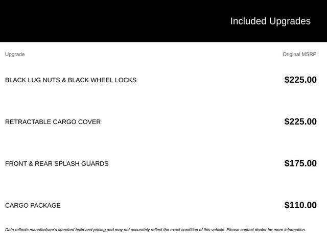 - Black Bodyside Cladding, Black Wheel Well Trim and Black Fender Flares