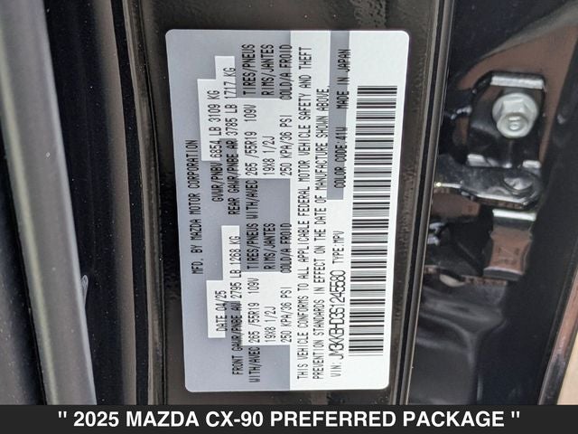 2025 Mazda CX-90 3.3 Turbo Preferred Jet Black Mica 4D Sport Utility 3.3 Turbo Preferred AWD 8-Speed Automatic I6 Turbo